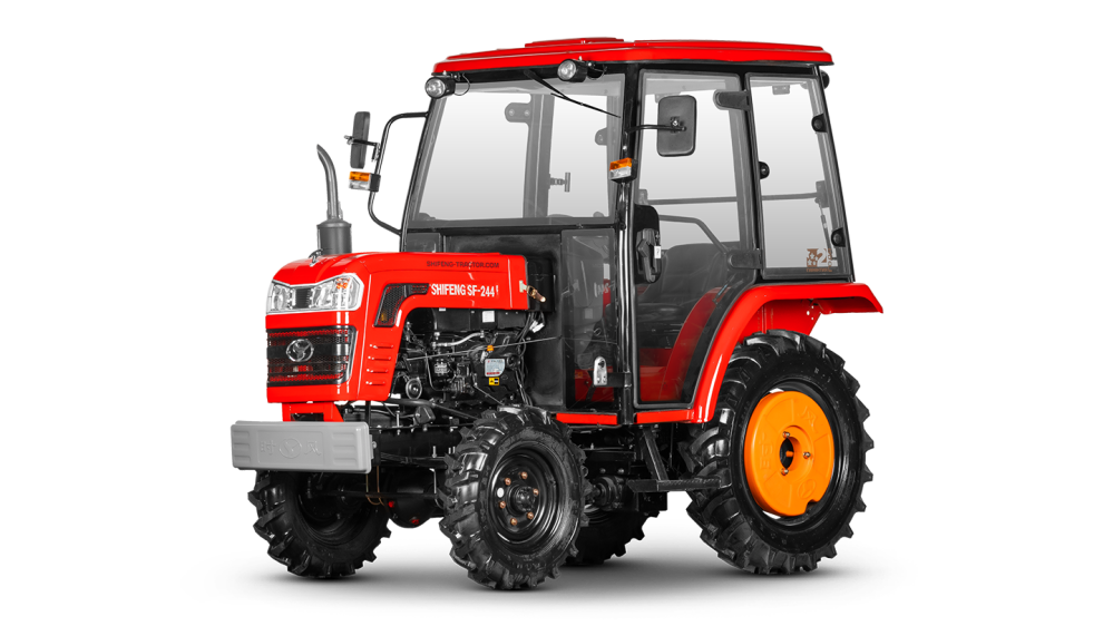 SF-244С выделяется на фоне конкурентов благодаря своим габаритам и комфортабельной кабине. Размеры кабины обеспечивают легкий доступ и удобство в использовании, а система водяного охлаждения с эффективным отоплением делает работу комфортной. Система охлаждения двигателя с электроприводом вентилятора повышает надежность и уменьшает риск перегрева, что увеличивает срок службы трактора.